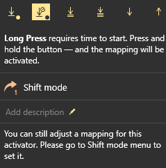 Right now we can only change the time for Long Press globally in the settings, but it would be very nice to be able to adjust this in the menu like the screenshot below on a per binding basis, or on higher levels like per device, per shift layer, per config, etc