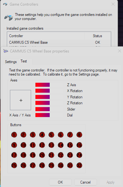 Attached is an example of how Windows detects the steering wheel and all the buttons.