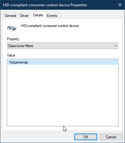 1. The Hidgamemap is not a device - it is a filter driver that reWASD uses. If you disable it you break reWASD. The driver is assigned in the registry (HKEY_LOCAL_MACHINE\SYSTEM\CurrentControlSet\Contr ol\Class\...\ LowerFilters) which is an all HID classes common registry. So, the hidgamemap assigns as the filter driver for different HID devices classes like mouses, keyboards, controls, etc. However, the driver doesn't assign to unsupported devices class, let say an audio class as reWASD doesn't support audio devices and doesn't affect them.