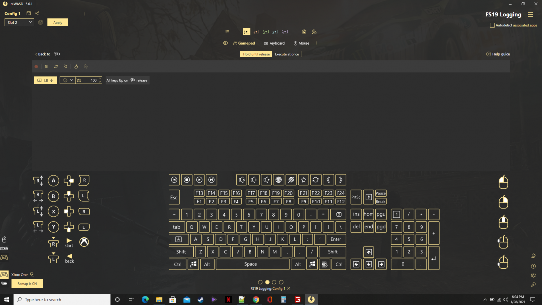 I use an Xbox 360 controller to play Farm Simulator 19. What I'm looking to do is have a slot for all the standard controls and then one or two for specific machines. Using the standard control inputs for a logging machine is just insane with no flow. I've tried remapping controls with no real luck. I can get the direction of movement that I want but the sticks react only full or nothing and I can't use the two sticks together. Only one at a time. This seems like a great program, but I just don't seem to get some of it.