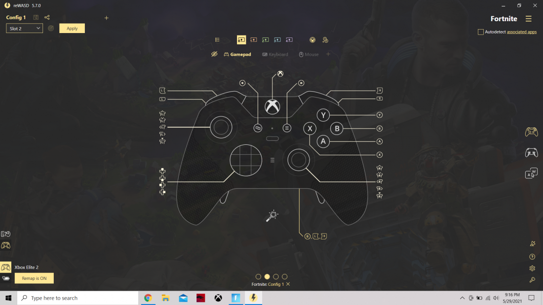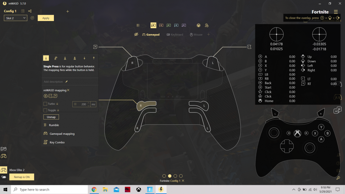 So I just got the reWASD so I can remap the paddles on my elite 2 controller. I used the paddles with default settings and the customized via the Xbox accessories app with no issue. Set it all back to default in the accessories app and unmapped the paddles. I have setup a config in reWASD and applied it to slot 2, I setup for only 1 paddle just to test it out, its not working, in fact when I show the overlay, the paddles aren't even shown on the overlay(don't know if this is normal or not) however while in the application and I press the paddle, it displays the configuration for that paddle so the button input is working. Can someone please help me out, I dont know if I am doing something wrong or if there is an issue. I have included some screenshots, thanks