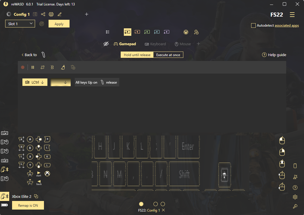 Hello all, i installed rewasd last night and was able to configure my Xbox Elite 2 controller. Today i clicked on a button to configure, then clicked keyboard in the UI. When i mouse over the keyboard in the UI the screen gets glitchy and is unusable. (see attached screenshot). A reinstall didn't fix the issue.