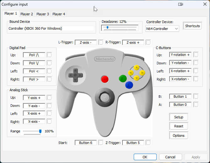 3. Project64 is a Nintendo64 emulator. I'm not sure why the emulator works with your Xbox 360's native input, but you should try to change the reWASD virtual controller type to Nintendo Switch. This does not guarantee that the reWASD virtual controller will work, as the input of the Nintendo Switch and N64 is different. But you should try it.​