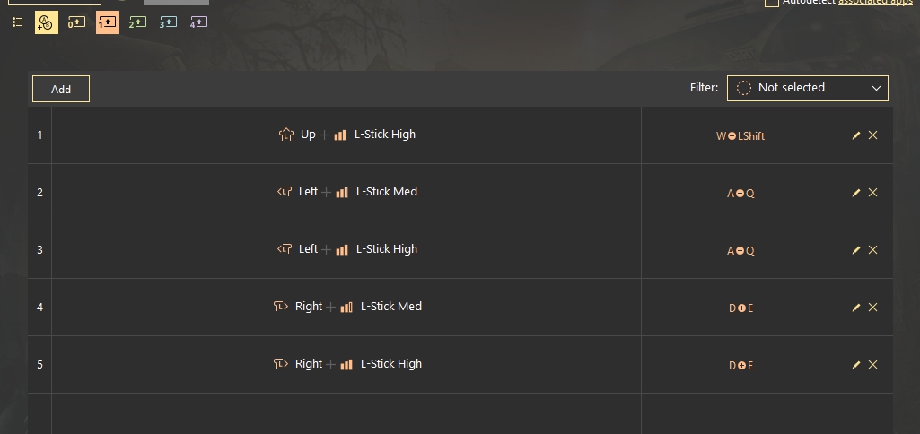 As you may see, each shortcut made of stick zone and stick direction is mapped to the combo of keyboard keys (direction + your additional action).