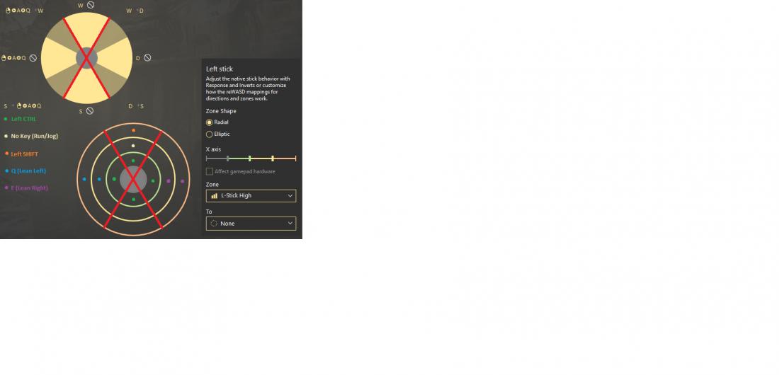 For example let's say, Zone L-Stick High "on the left side" could be mapped to Q, and Zone L-Stick High "on the right side" mapped to E, rather than the entire High Zone Radial being mapped to one key.