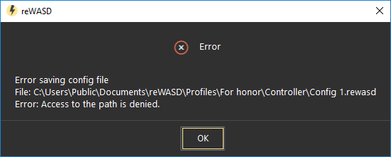 For some reason whenever I try and do anything in ReWASD that requires editing actual files it gives errors, when I try and Apply/edit a profile it gives me this: